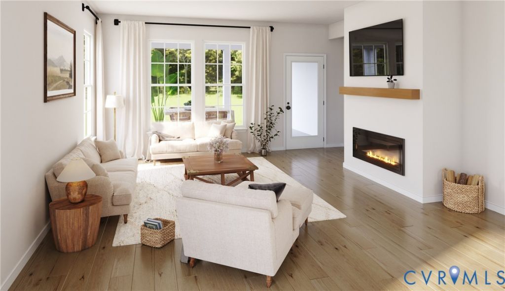 NOW SELLING WITH A LATE SUMMER DELIVERY! This quick move in home, featuring the Smith floor plan, offers 2,299 square feet of thoughtfully designed living space with the convenience of main-level living. The private Owner's Suite is ideally located on the first floor, just steps from the kitchen, family room, and patio, creating a seamless and functional layout. The en-suite bath features an included infinity shower with a sleek heavy glass shower door for a spa-like feel. Upstairs, you'll find two additional bedrooms and a spacious loft, perfect for guests, a home office, or flexible living space. The heart of the home is the designer kitchen, showcasing quartz countertops, a stylish backsplash, light-colored cabinetry with decorative trim, a built-in microwave and wall oven, and a convenient trash can pull-out-perfectly blending beauty and functionality. Luxury vinyl plank (LVP) flooring flows throughout the main living spaces, adding durability and timeless style. Additional highlights include a cozy first-floor fireplace with mantle, a craftsman trim package throughout the interior, and a charming farmhouse exterior elevation that enhances curb appeal. **Photos are representative and not of the actual home for sale.
